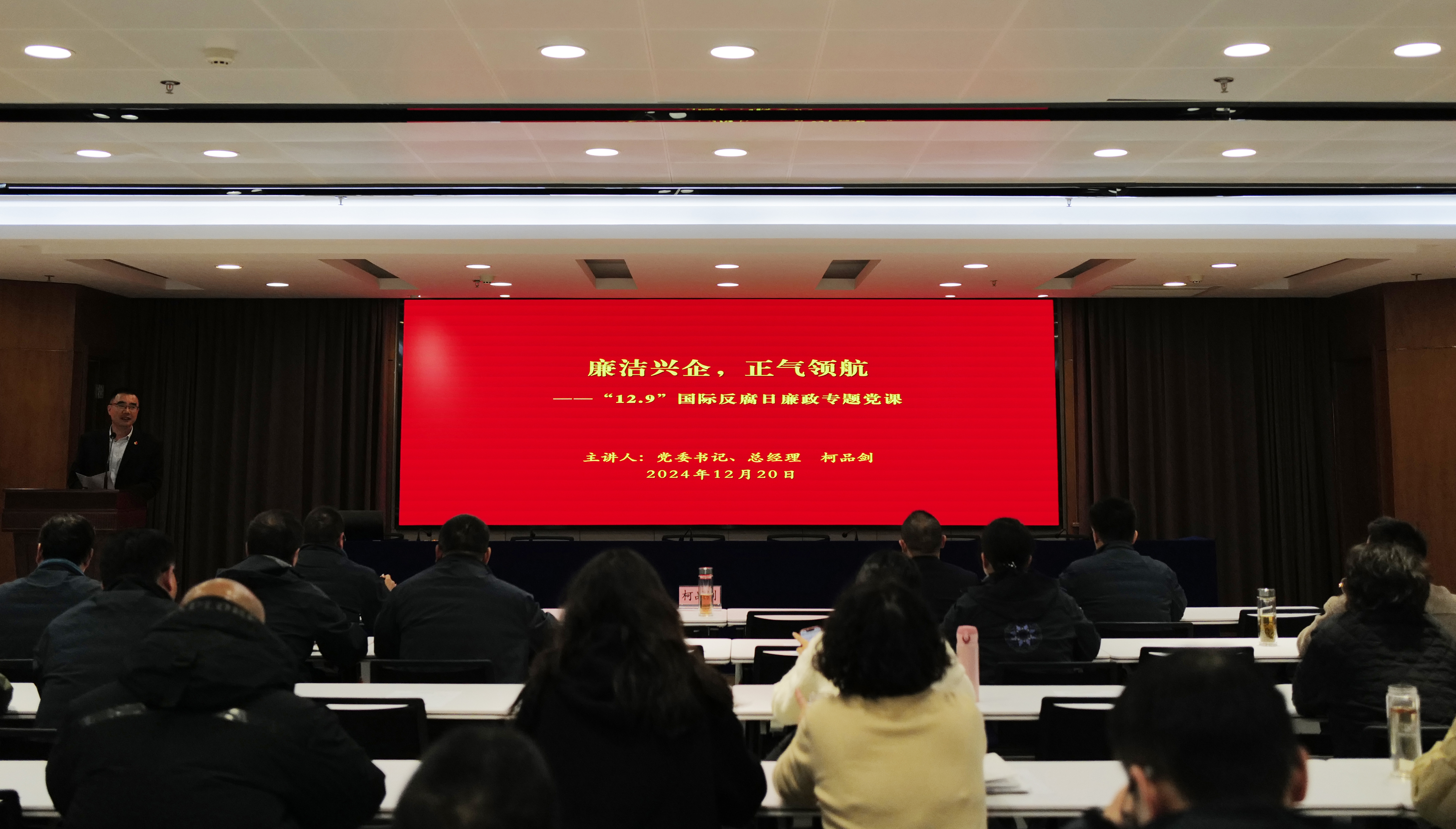 今年12月9日是第二十一個國際反腐敗日,其主題“聯手反腐敗,實現和平、發展和安全”,在當下更顯深刻意義。12 月 20 日下午,公司組織了一場廉政專題黨課,由公司黨委書記、總經理柯品劍親自授課,部門助理及以上管理人員40多人參加會議。通過黨課教育,努力筑牢黨員干部廉政思想防線,提升廉潔自律的主動性,營造企業風清氣正的良好發展環境。