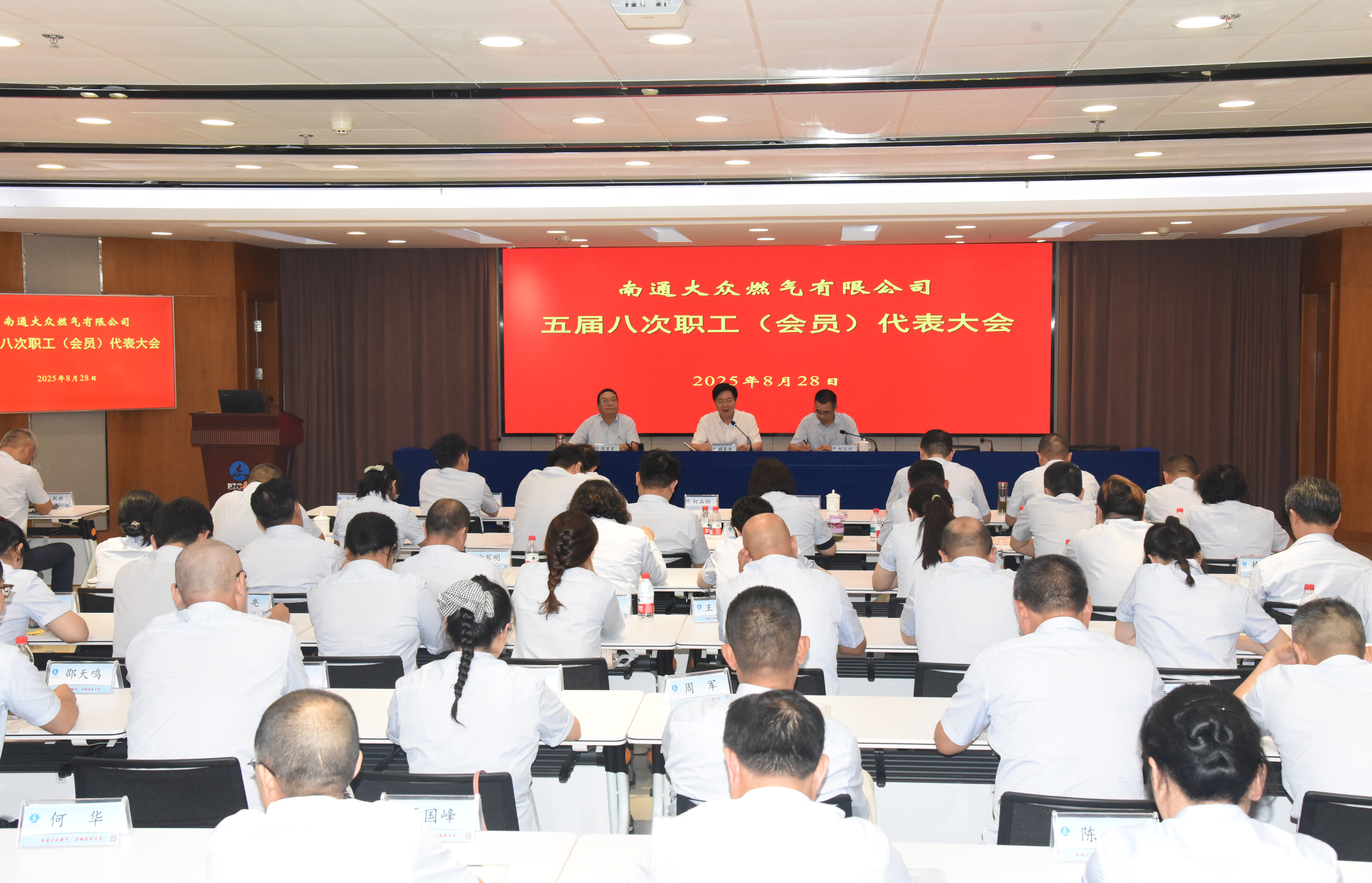 8月28日下午,公司在燃氣大廈二樓會議室召開五屆八次職工(會員)代表大會,71名職工(會員)代表出席本次會議,20名公司中層及以上管理人員列席會議。南通城建集團黨委委員、工會聯合會主席、南通市燃氣有限公司董事長顧圣全同志到會并講話。