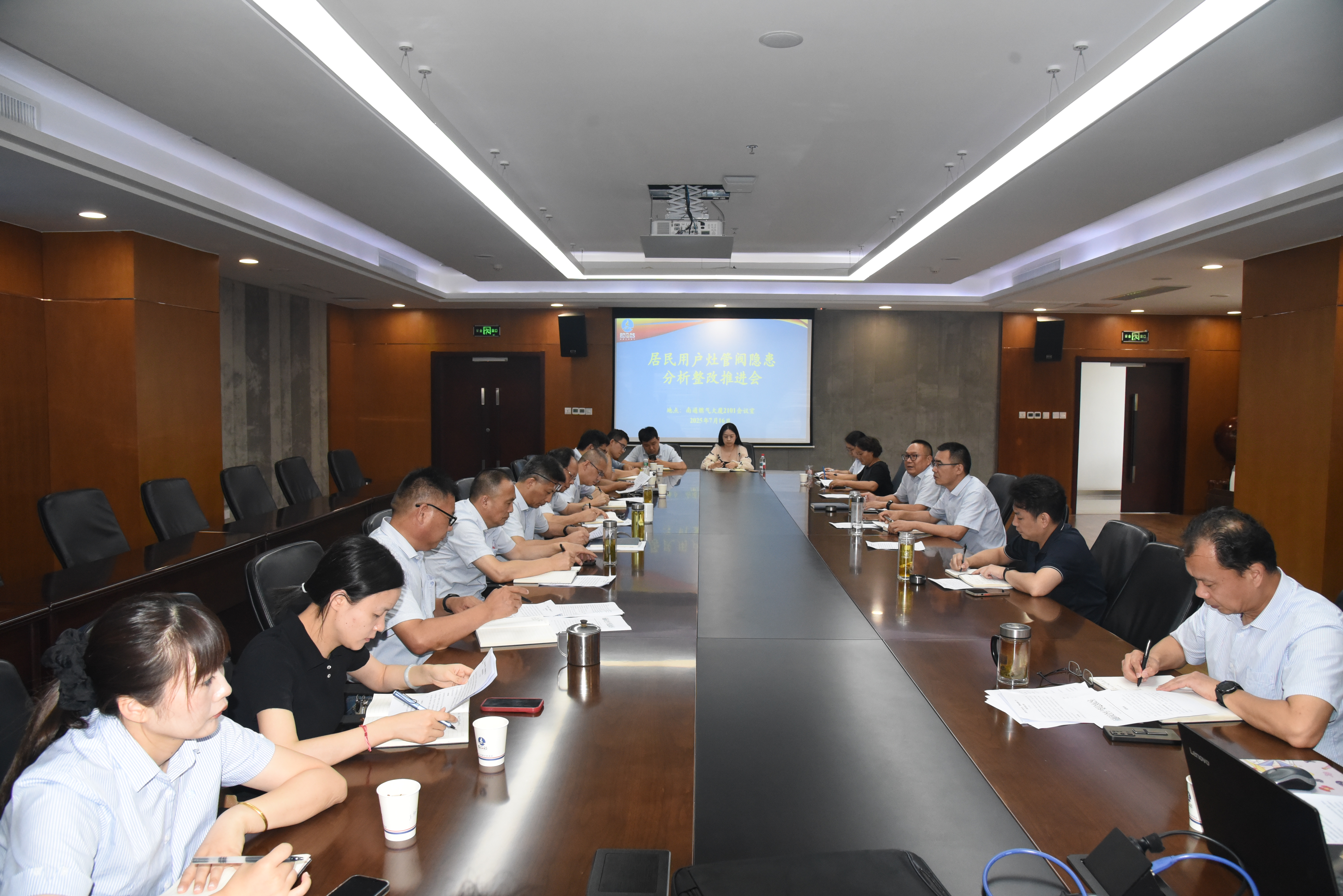 7月16日下午14:00,公司在燃?xì)獯髲B2101會(huì)議室組織召開(kāi)居民用戶灶管閥隱患分析整改推進(jìn)會(huì)。公司高管及相關(guān)部門(mén)負(fù)責(zé)人參加會(huì)議。會(huì)上通報(bào)了2023年9月至2025年6月期間安檢發(fā)現(xiàn)的燃?xì)庠睢⒐艿兰伴y門(mén)隱患總體情況,并就即將實(shí)施的集中整治方案展開(kāi)了研究討論。
